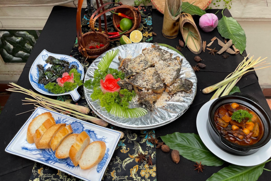 Mâm cơm Việt truyền thống được nâng tầm, tái hiện tinh hoa ẩm thực quê hương.