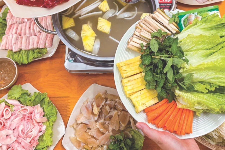 Bò nhúng dấm với nước dùng chua thanh, thịt bò tươi ngon tại Hiệp Mẩu.