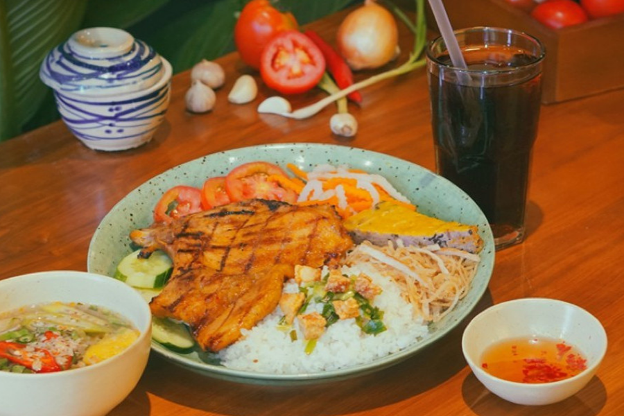 Đi ngang qua Cơm Tấm Sườn Nướng, bất kỳ ai cũng phải ngoái nhìn và nuốt nước miếng bởi làn khói thơm lừng tỏa ra từ bếp nướng lộ thiên ngay trước cửa. Bí quyết giữ chân khách hàng bao năm qua của quán nằm ở khâu tẩm ướp thịt cực kỳ công phu với mật ong và các loại gia vị bí truyền tạo nên màu sắc và hương vị đặc trưng. Khi nướng lên, lớp mỡ chảy ra xèo xèo tạo nên màu nâu cánh gián óng ả vô cùng hấp dẫn, thịt mềm mà không bị khô xác. Đây xứng đáng là một trong những quán cơm tấm ngon Hà Nội mà các tín đồ mê thịt nướng đậm đà nhất định phải ghé thử một lần trong đời. Không chỉ có sườn ngon, Cơm Tấm Sườn Nướng còn ghi điểm bởi hạt cơm tấm vỡ vừa phải, nấu bằng nồi gang nên giữ được độ tơi xốp và thơm mùi gạo mới rất đưa miệng. Đội ngũ nhân viên tại đây phục vụ rất nhanh nhẹn, nhiệt tình, đảm bảo suất cơm đến tay thực khách luôn nóng sốt và thơm ngon nhất có thể.