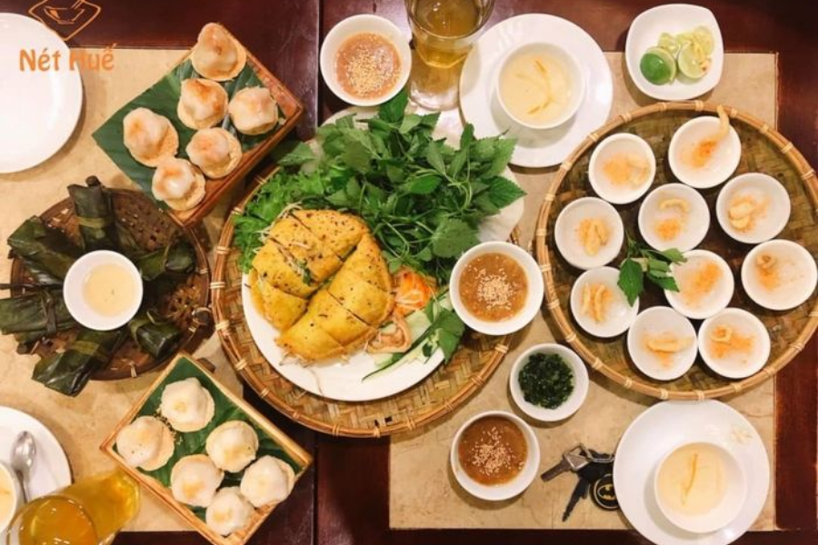 Quán Huế là địa điểm quen thuộc, chuyên về các món đặc sản và ăn vặt đặc trưng của Huế với mức giá bình dân. Quán thường có không gian giản dị, sạch sẽ, tập trung vào chất lượng món ăn truyền thống. Món best seller là các món ăn đường phố như Bánh bột lọc, Bánh nậm, Nem Lụi và các món nước (Bún Huế) được chế biến nhanh chóng, đậm đà. Đây là lựa chọn lý tưởng để thưởng thức trọn vẹn hương vị Huế dân dã. Khoảng giá tham khảo rất phải chăng, chỉ từ 50.000 VNĐ – 150.000 VNĐ/người.