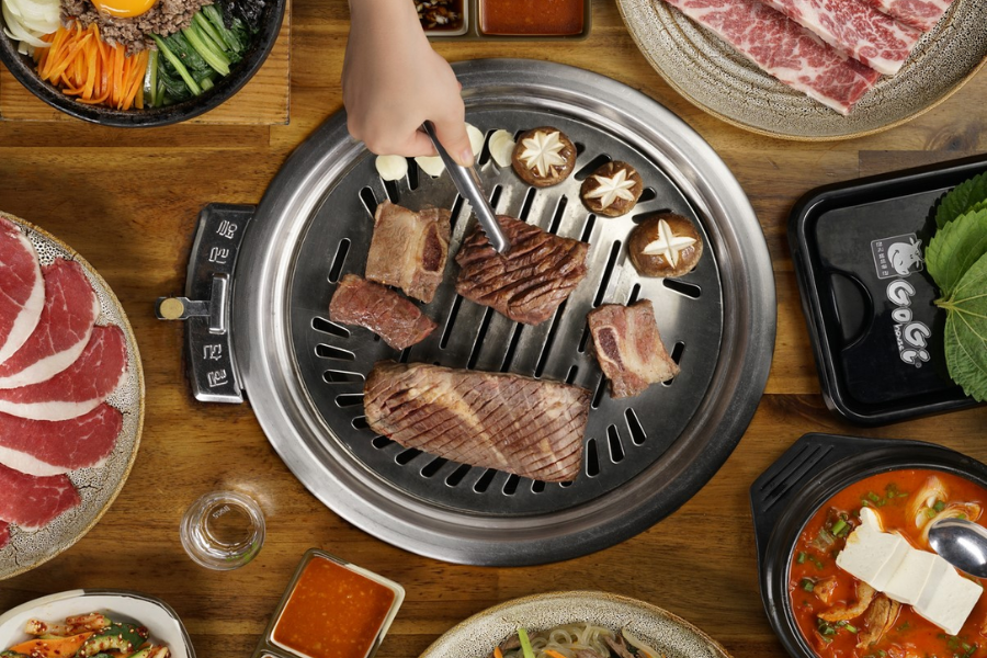 Ba chỉ bò Mỹ, dẻ sườn, thăn nội, nạc vai heo được tẩm ướp gia vị đậm đà, khi nướng tỏa hương thơm lừng chính là điểm nhấn của Gogi. Ngoài các món thịt nướng, nhà hàng còn phục vụ canh kim chi, cơm trộn, mì lạnh, pancake Hàn Quốc – tái hiện trọn vẹn bữa tiệc truyền thống của người Hàn.