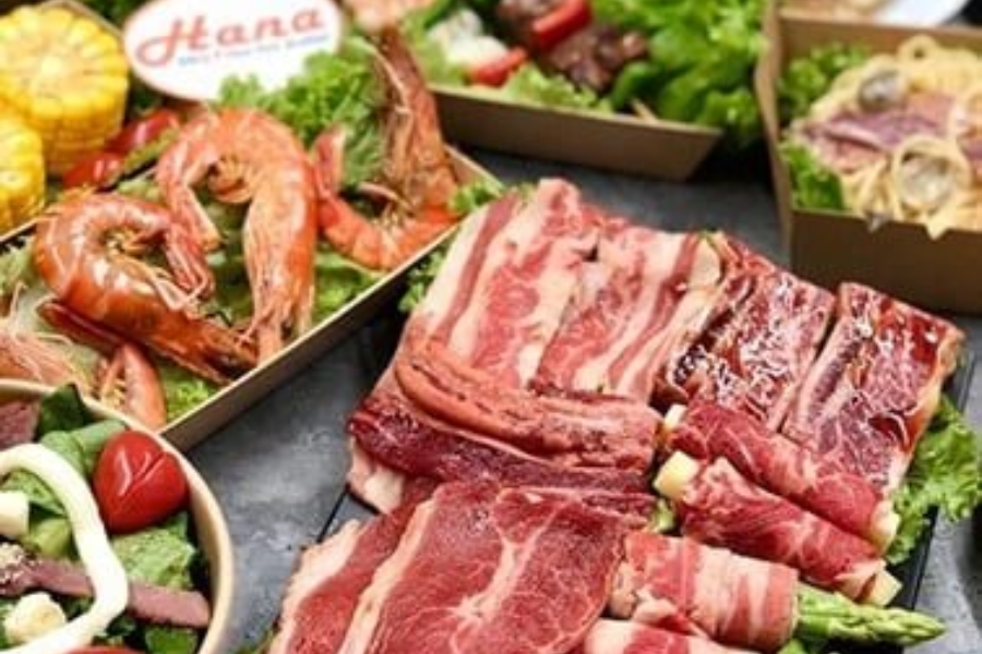 Hana Buffet là nhà hàng chuyên Buffet nướng lẩu Nhật Bản ngon chuẩn vị. Nhà hàng có không gian hiện đại, lịch sự, rất phù hợp cho những buổi tiệc ấm cúng hoặc kỷ niệm. Món best seller tại đây là sự kết hợp của các loại thịt bò Mỹ hảo hạng (sườn bò, thăn bò, dẻ sườn bò), hải sản tươi ngon (tôm, mực, sò điệp) và đặc biệt là món Hàu Nướng Phô Mai được nhiều thực khách yêu thích. Khoảng giá tham khảo từ 258.000 VNĐ – 298.000VNĐ/người (tùy suất trưa/tối và cuối tuần), là mức giá hợp lý cho trải nghiệm nướng lẩu Nhật Bản chất lượng.