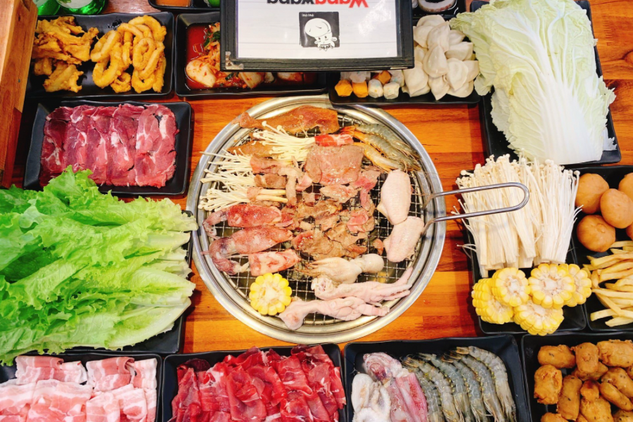Thực đơn buffet đa dạng tại Lẩu nướng Wang Wang Huỳnh Thúc Kháng