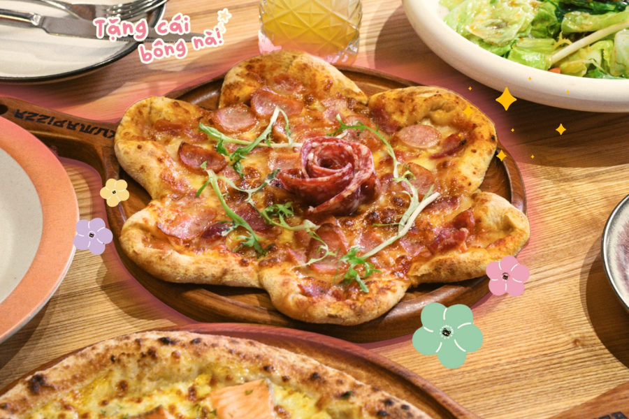 Một chiếc pizza nướng lò đá với lớp vỏ mỏng, giòn tan, nhân phô mai béo ngậy chính là món ăn hoàn hảo để cả hai cùng chia sẻ. Bạn có thể thử món Pizza Bò Mê Xi Cô với vị cay nhẹ và nhân bò đậm đà, hay món Pizza Hải Sản với tôm, mực tươi ngon, mang hương vị biển cả. Ngoài ra, một đĩa mỳ Ý đậm đà sốt kem hay salad tươi mát cũng là lựa chọn tuyệt vời để bổ sung cho bữa ăn, tạo nên một bữa tối phong phú và đầy đủ.