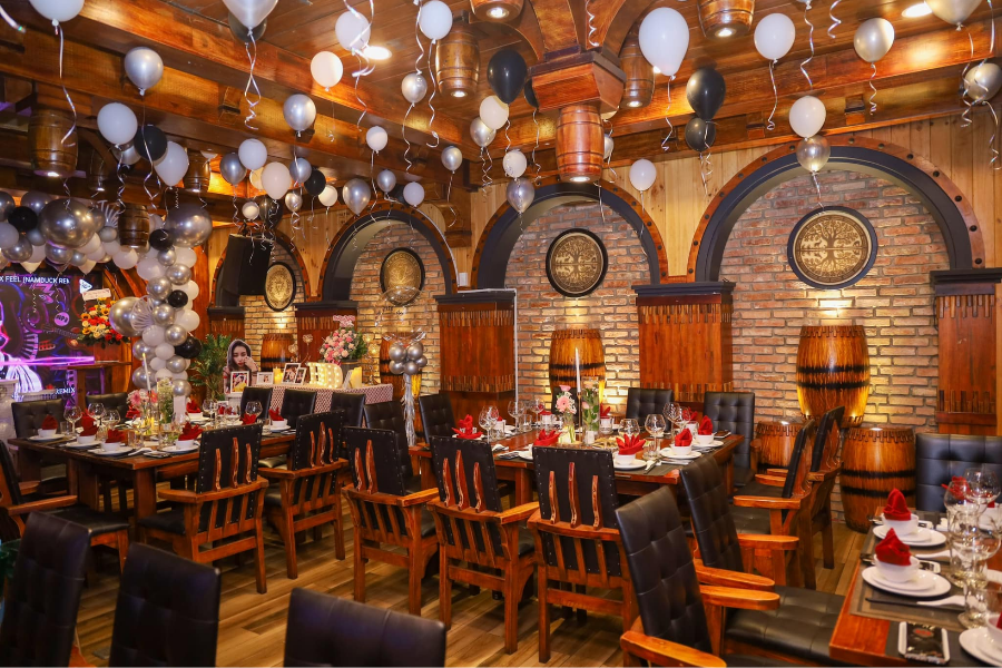 Sự kết hợp hoàn hảo giữa những miếng Steak thượng hạng và các dòng vang tinh tế đã tạo nên thương hiệu của Hầm rượu S1980 Wine Steak, một điểm đến lý tưởng cho những tín đồ yêu thích sự giao thoa ẩm thực hiện đại. Không gian nhà hàng được thiết kế lấy cảm hứng từ những căn hầm rượu cổ điển tại vùng Bordeaux nhưng vẫn mang hơi thở đương đại, tạo cảm giác lịch sự và vô cùng chuyên nghiệp. Thực khách đến đây thường dành lời khen cho món bít tết bò Mỹ chín vừa mọng nước ăn kèm sốt rượu vang độc bản, tạo nên một bản giao hưởng vị giác khó quên khi được thưởng thức trong ánh đèn vàng dịu nhẹ. Với khoảng giá tham khảo từ 400.000 VNĐ đến 800.000 VNĐ/người, S1980 là tọa độ ẩm thực lý tưởng cho cả những buổi tiếp khách lẫn những dịp hẹn hò lãng mạn.