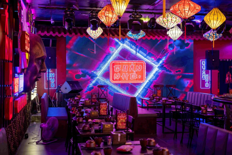 Quán Nhỏ 118 Nguyễn Khánh Toàn gây ấn tượng mạnh mẽ ngay từ khi bước chân vào nhờ vào không gian được thiết kế theo phong cách Hồng Kông những năm 80 - 90. Toàn bộ nhà hàng được trang trí tỉ mỉ, tái hiện một cách sống động những con phố nhỏ với ánh đèn neon rực rỡ, những tấm biển hiệu chữ Hán và các chi tiết decor mang đậm dấu ấn điện ảnh.