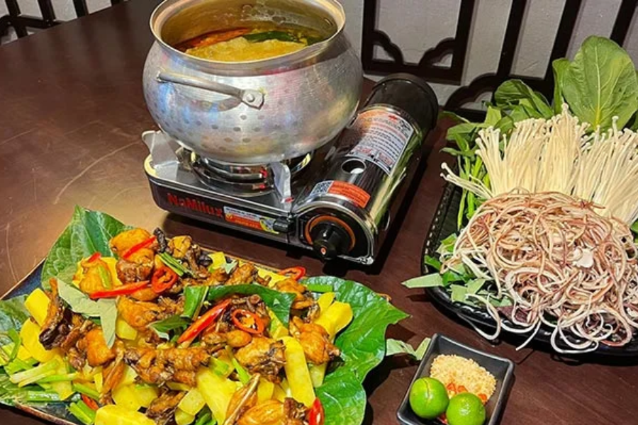 - Lẩu riêu cua bắp bò: Sau khi đã thưởng thức các món nướng, một nồi lẩu riêu cua bắp bò nóng hổi sẽ là lựa chọn hoàn hảo. Nước dùng lẩu được chế biến theo công thức truyền thống, đậm đà vị riêu cua, béo ngậy mà không gây ngán. Bắp bò tươi ngon, mềm ngọt cùng với các loại rau ăn kèm tạo nên một nồi lẩu hấp dẫn, bổ dưỡng.