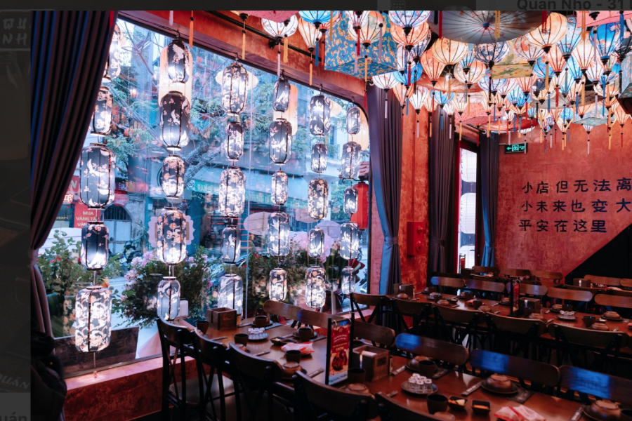 Nếu bạn đã quen thuộc với những nhà hàng lộng lẫy, sang trọng thì Quán Nhỏ 31 Láng Hạ sẽ mang đến một cảm giác hoàn toàn khác. Đúng như tên gọi, nhà hàng sở hữu một không gian nhỏ xinh, ấm cúng và đầy hoài niệm. Ngay khi bước vào, bạn sẽ cảm nhận được sự giản dị, mộc mạc nhưng lại rất tinh tế trong từng chi tiết. Quán được thiết kế theo phong cách tối giản, với gam màu trầm ấm, tạo cảm giác thân thuộc như đang dùng bữa tại chính căn nhà của mình. Những bộ bàn ghế gỗ, những bức tranh tường về phố cổ Hà Nội hay những chiếc đèn lồng cổ kính đều góp phần tạo nên một không gian đậm chất Việt.