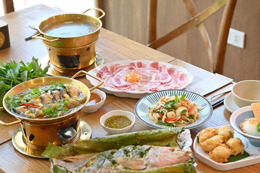 Bếp Thái Koh Yam là điểm dừng chân lý tưởng cho những tín đồ yêu thích hương vị ẩm thực xứ Chùa Vàng chuẩn vị và tinh tế. Nhà hàng sở hữu không gian hiện đại, trang nhã, mang đậm hơi thở văn hóa Thái Lan đương đại, rất phù hợp cho những buổi hẹn hò hoặc bữa cơm gia đình đầm ấm. Món best seller làm nên thương hiệu tại đây chính là lẩu Thái Tomyum chua cay đậm đà cốt dừa, gỏi xoài cá trê đồng giòn rụm và súp Tomyum chuẩn vị. Với mức giá tham khảo từ 250.000 VNĐ đến 350.000 VNĐ/người, Koh Yam hứa hẹn mang đến một hành trình vị giác bùng nổ và đầy cảm hứng.