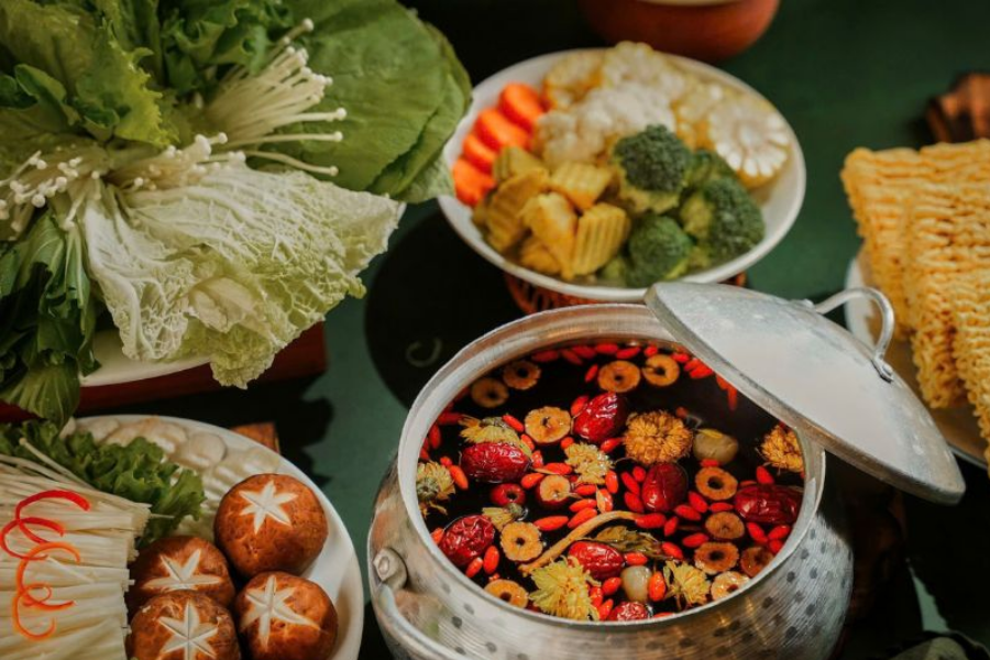 Buffet Lẩu Chay đa dạng, phong phú đồ nhúng trong không gian rộng rãi tại Liên Hương Vegan.