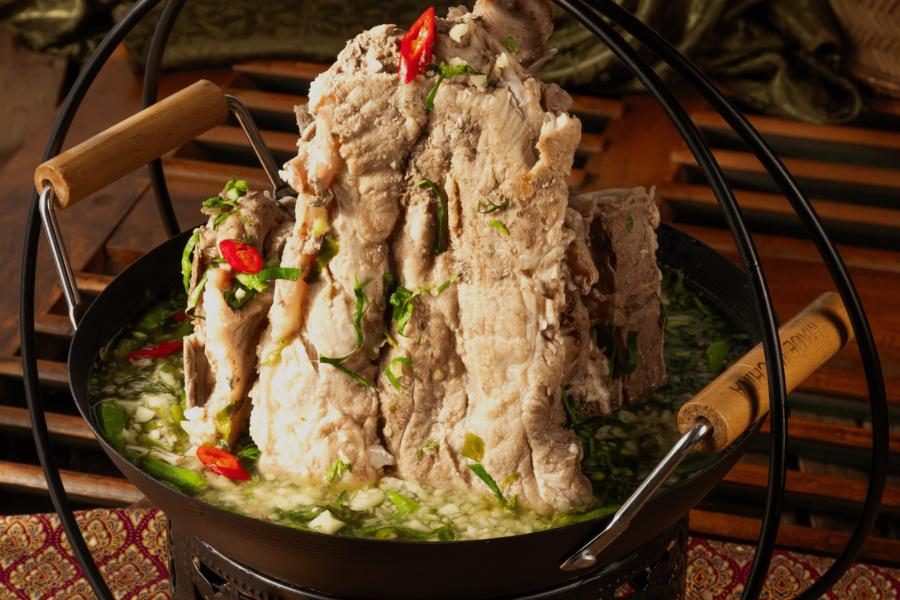 Xương Khủng Long cay nổi tiếng và Lẩu Tom Yum hải sản chuẩn vị Thai Select tại Thai Market Restaurant.