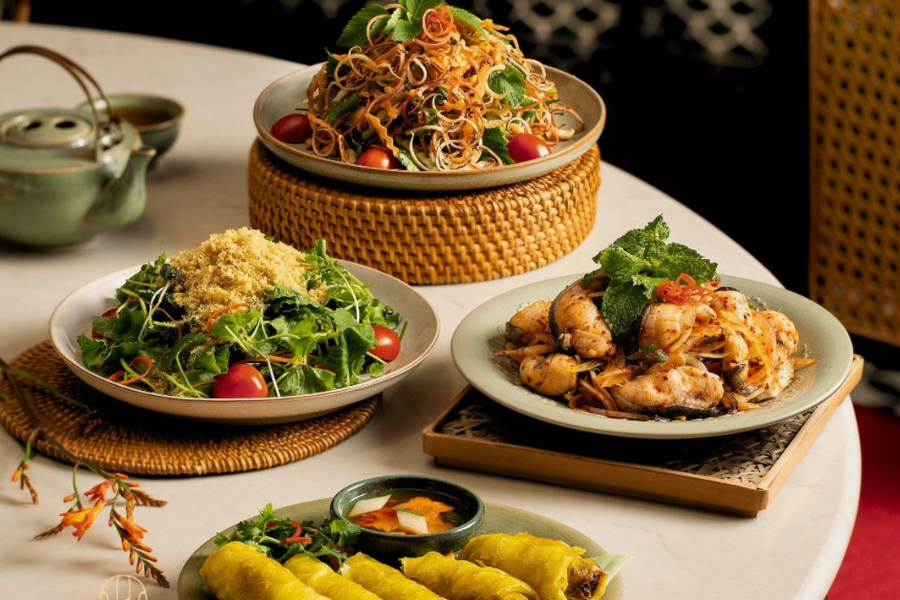 Các món cá Lăng tươi ngon được chế biến đa dạng, phục vụ trong không gian hiện đại tại Chả cá Hà Thành.