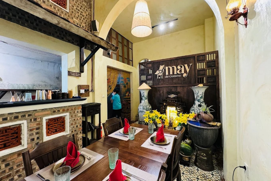 May De Cuisine là cái tên cuối cùng nhưng không kém phần hấp dẫn trong danh sách này, tọa lạc trên con phố Mã Mây sầm uất bậc nhất khu vực phố cổ. Nhà hàng gây ấn tượng mạnh với kiến trúc mang đậm dấu ấn phương Tây sang trọng nhưng vẫn phảng phất nét đẹp truyền thống Việt Nam. Là một Nhà hàng Hoàn Kiếm đẳng cấp, May De Cuisine chuyên phục vụ các món ăn Âu - Á kết hợp, đáp ứng khẩu vị đa dạng của thực khách trong và ngoài nước. Từ những món steak mềm mọng nước đến các món ăn truyền thống Hà Nội đều được chế biến với tiêu chuẩn cao nhất. Không gian tại đây rộng rãi, ánh đèn vàng ấm áp tạo nên bầu không khí lãng mạn và thân mật. Đây là địa điểm thường xuyên được lựa chọn để tổ chức các bữa tiệc kỷ niệm, sinh nhật hay tiếp đãi đối tác quan trọng. Sự chuyên nghiệp trong quy trình phục vụ cùng chất lượng món ăn ổn định đã giúp May De Cuisine khẳng định được vị thế của mình trên bản đồ ẩm thực thủ đô đầy cạnh tranh.