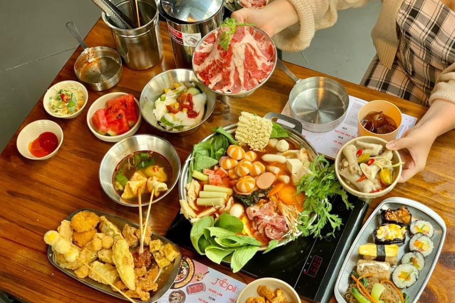 Joopii là chuỗi buffet tokbokki Hàn Quốc thu hút giới trẻ nhờ mức giá hợp lý chỉ từ 159.000 VNĐ/người, đã bao gồm VAT và nước uống. Thực đơn đa dạng với nhiều loại sốt như phô mai, chajang, kem… đi kèm gần 60 loại topping: thịt, hải sản, viên nhúng, mì, rau củ, cùng các món ăn kèm như bingsu, salad và trái cây theo mùa. Không gian quán rộng rãi, hiện đại, thiết kế trẻ trung với quầy buffet trung tâm tiện lợi, rất thích hợp cho những buổi hẹn hò, tụ tập bạn bè hay gia đình. Joopii hiện có nhiều chi nhánh tại TP. HCM, luôn đông khách vào cuối tuần và dịp lễ, vì vậy bạn nên đặt bàn trước để có trải nghiệm trọn vẹn và không phải chờ đợi lâu.