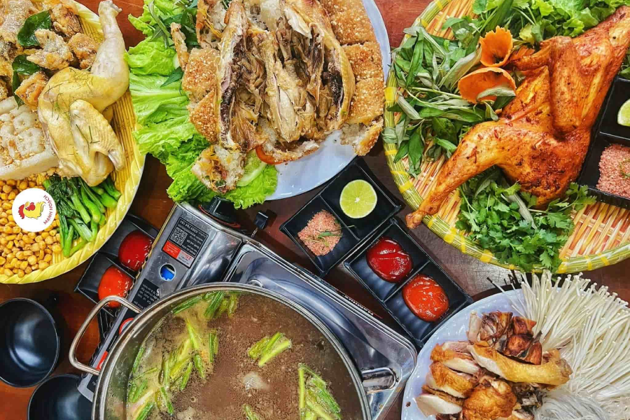 Gà Mẹt Thiên Vương là địa chỉ dừng chân lý tưởng cho những ai yêu thích sự đa dạng trong một bữa ăn. Nhà hàng sở hữu không gian trang nhã, ấm cúng, mang đậm nét văn hóa Việt, cực kỳ phù hợp cho những bữa cơm gia đình đầm ấm. Món best seller tại đây chính là Mẹt gà 7 món với đủ vị: gà quay, gà hấp lá chanh, chân gà sả ớt, xôi nếp nương... giúp thực khách trải nghiệm trọn vẹn tinh hoa ẩm thực từ gà. Với mức giá tham khảo từ 150.000 VNĐ đến 250.000 VNĐ/người, Thiên Vương luôn đảm bảo sự hài lòng về cả chất lượng và số lượng.