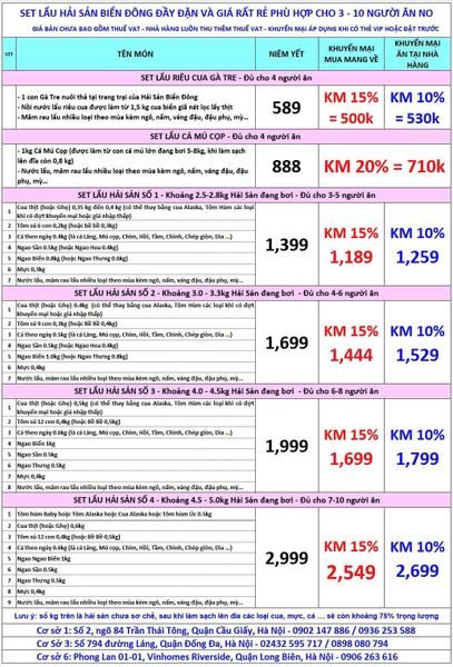 - Giá menu chưa bao gồm VAT. Nhà hàng luôn thu 10% VAT.