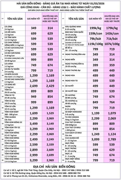 Nhà hàng Hải Sản Biển Đông - Số 2 Ngõ 84 Trần Thái Tông, Phường Dịch Vọng Hậu, Quận Cầu Giấy, Hà Nội - Điểm đến lý tưởng cho tín đồ mê Hải Sản