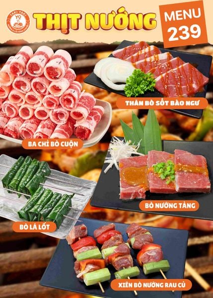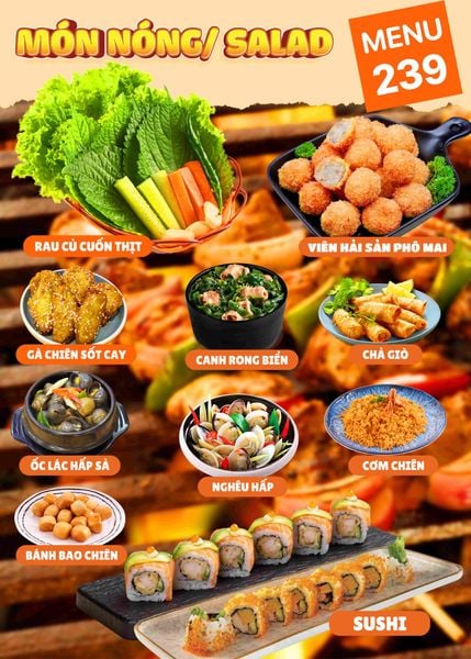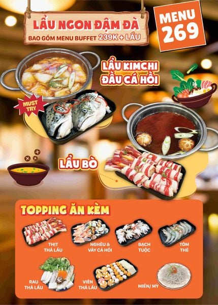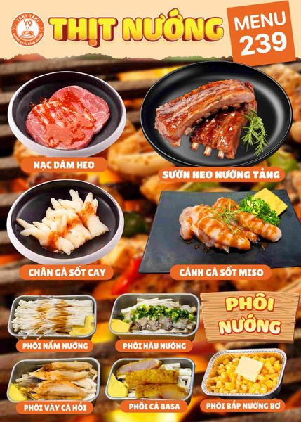 - Quán có 2 loại vé buffet nướng: Buffet nướng 239K và Buffet nướng 269k.