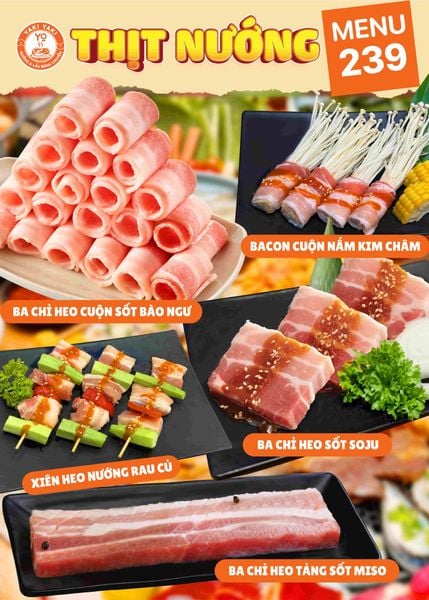 Yaki Yaki Yo tự hào mang đến cho thực khách trải nghiệm buffet lẩu nướng với thực đơn phong phú, kết hợp hài hòa giữa ẩm thực truyền thống và hiện đại. Các món ăn tại đây được chế biến từ những nguyên liệu tươi ngon nhất, đảm bảo chất lượng và hương vị độc đáo. Đặc biệt, nhà hàng nổi bật với các món đặc trưng như Súp bò cay, Súp hải sản, Cơm chiên hải sản, Gà chiên karage, Nghêu hấp Thái và nhiều món nướng tẩm ướp đậm đà, thơm phức. Tất cả đều được chế biến bởi đội ngũ đầu bếp giàu kinh nghiệm, mang đến hương vị hoàn hảo trong từng miếng ăn.