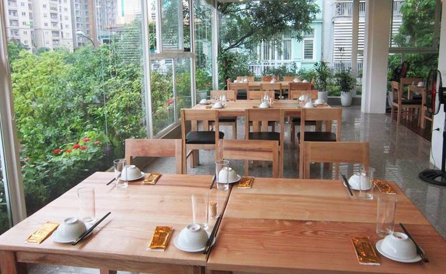 Mặt tiền nhà hàng không có gì đặc biệt nếu không muốn nói là đơn giản và bình dị tuy nhiên sức chứa lên đến 100 khách. Nhưng khi bước qua cánh cửa nhà hàng là một không gian hoàn toàn khác mà sẵn sàng làm hài lòng bất cứ vị khách khó tính nào. Bên trong là một không gian rộng rãi với gam màu trầm vừa toát lên vẻ sang trọng mà cũng rất ấm cúng cho thực khách.