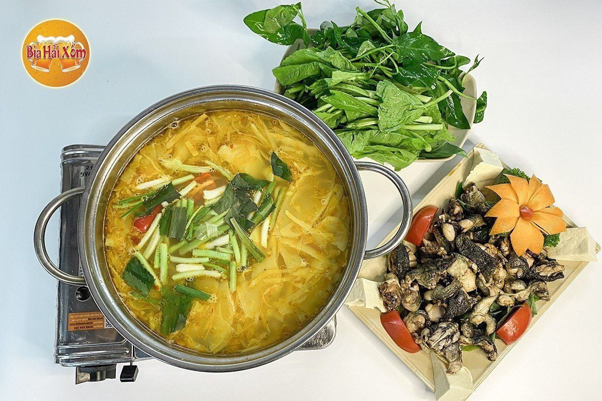 Đến với Bia Hải Xồm bạn sẽ được thưởng thức những món ăn độc đáo được những đầu bếp hàng đầu làm ra bằng cả tâm huyết chính. Những món ăn thơm ngon được tẩm ướp theo công thức riêng của nhà hàng luôn để lại một ấn tượng sâu sắc trong lòng các khách hàng. Nếu có cơ hội đến với Bia Hải Xồm thì bạn nhất định phải thử các món ăn đặc sắc nhất nơi đây như: Lẩu gà ngải cứu, bê xông đá, bắp nghé xào măng trúc, cà dê tiềm thuốc bắc, sụn rang muối, tôm sú chiên trứng muối,...