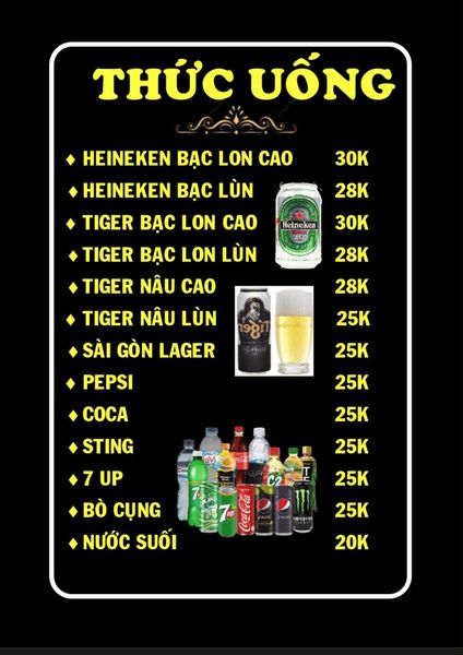* Món đặc sắc: ba rọi nướng muối ớt, nầm sữa nướng chao, cá tầm nướng muối ớt, gà ta hấp chanh,...