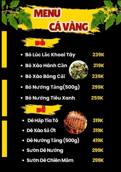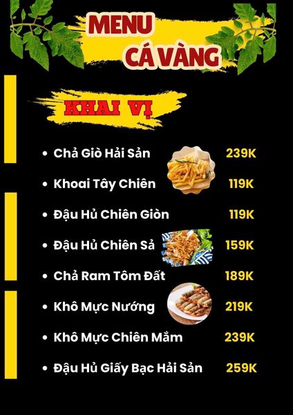 Không chỉ có thực đơn hấp dẫn, Cá Vàng còn ghi điểm bởi mức giá vô cùng hợp lý, chỉ từ 100.000 – 200.000 VNĐ/người. Với chi phí vừa túi tiền, bạn có thể thưởng thức những bữa ăn chất lượng, phong phú mà không lo quá tốn kém. Thêm vào đó, đội ngũ nhân viên nhanh nhẹn, thân thiện càng làm trải nghiệm của thực khách trở nên thoải mái và trọn vẹn hơn. Nếu bạn đang tìm một nhà hàng hải sản ngon, giá cả phải chăng và không gian thân thiện tại Bình Tân, thì Cá Vàng chắc chắn là gợi ý tuyệt vời.