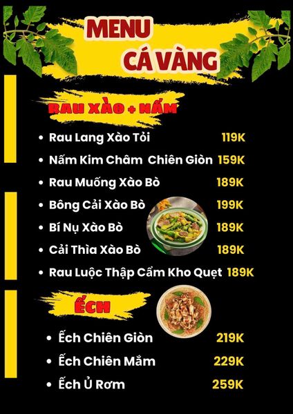 Tọa lạc ngay tại trung tâm quận Bình Tân, Cá Vàng - 11-13 Đường 19, Phường Bình Trị Đông, TP. Hồ Chí Minh là địa chỉ quen thuộc của những ai yêu thích hải sản tươi ngon và ẩm thực Việt Nam truyền thống. Không gian quán rộng rãi, thoáng mát với thiết kế hiện đại nhưng vẫn giữ sự gần gũi, ấm cúng. Đây là nơi lý tưởng để cả gia đình quây quần, bạn bè tụ họp hay đồng nghiệp tổ chức những bữa tiệc thân mật.