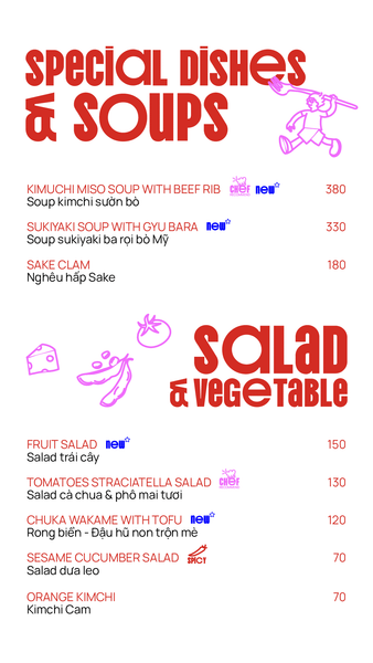 - Menu chưa bao gồm VAT, Nhà hàng luôn thu hộ thuế VAT. Mức phí VAT là theo quy định.