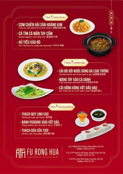 Nhà hàng Fu Rong Hua - Số 9 Đinh Tiên Hoàng, Hoàn Kiếm - Nhà hàng ẩm thực Quảng Đông.