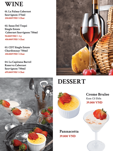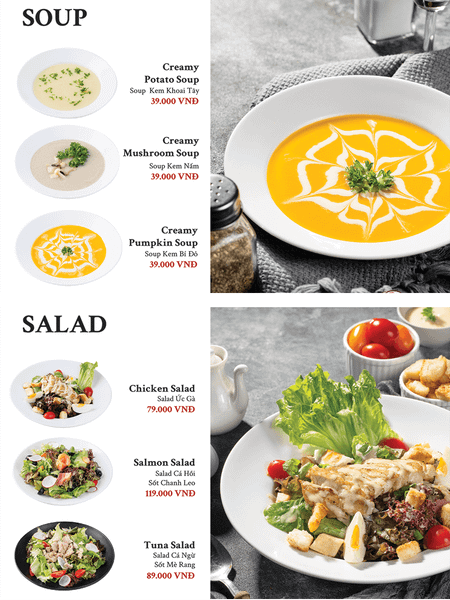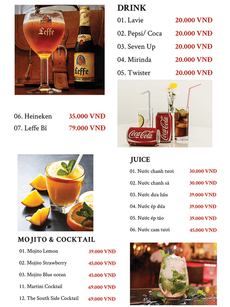 - Giá menu chưa bao gồm VAT. Nhà hàng không xuất hóa đơn VAT.
