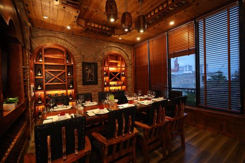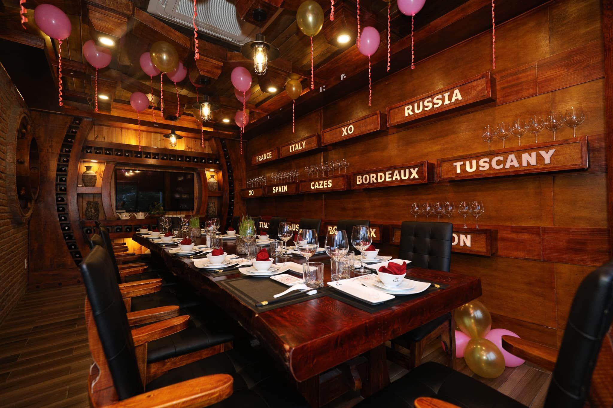 Ẩn mình giữa lòng thành phố, Hầm Rượu SOS tại 112 Đường 7 mang đến không chỉ những bữa ăn ngon, mà còn là một trải nghiệm đầy cảm xúc. Không gian quán được thiết kế theo phong cách hầm rượu cổ điển, với ánh sáng mờ ảo từ những chiếc đèn treo tường. Bước vào Hầm Rượu SOS, bạn như lạc vào một thế giới bí ẩn và lãng mạn, nơi từng góc nhỏ đều toát lên sự sang trọng và ấm cúng. Những bức tranh vùng đất rượu vang nổi tiếng hay các thùng gỗ ủ rượu được sắp đặt tinh tế, thể hiện sự đam mê và tâm huyết của chủ quán trong việc tạo nên một không gian mang đậm dấu ấn riêng.