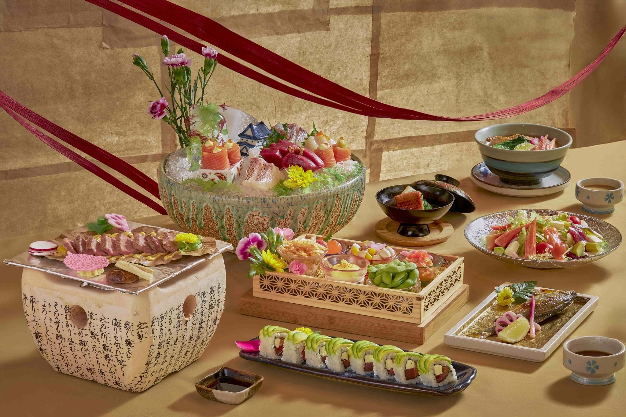 * Món đặc sắc: Sashimi tôm Nhật, Sashimi bụng cá ngừ Nhật, Sashimi cá hồi, Salad bò Nhật, Bề bề rang muối, Các loại sushi tổng hợp, Các loại lẩu như: lẩu bò nhật, lẩu buri, lẩu hải sản.