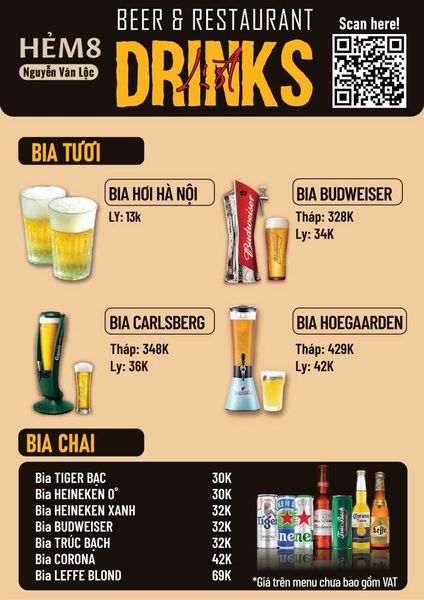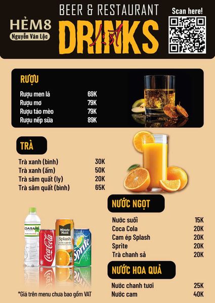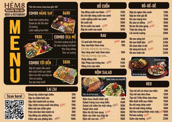 Giá menu chưa bao gồm VAT. Quý khách lấy hóa đơn, vui lòng thanh toán thêm chi phí VAT 8%.