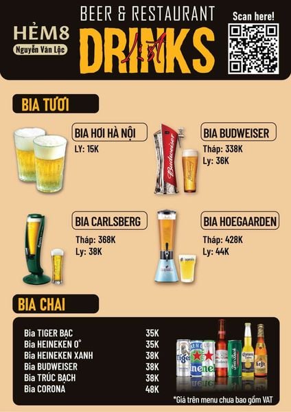 Giá menu chưa bao gồm VAT. Quý khách lấy hóa đơn, vui lòng thanh toán thêm chi phí VAT 8%.