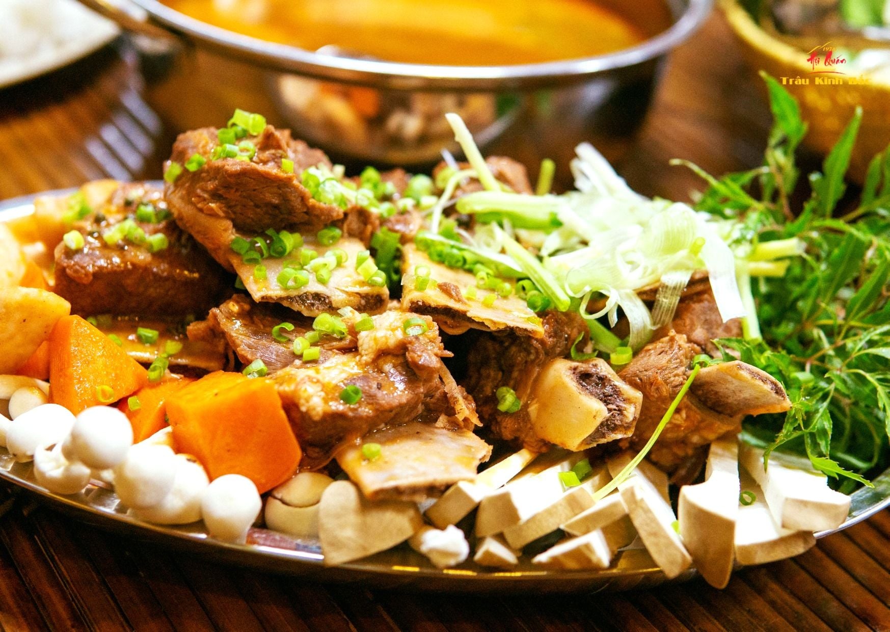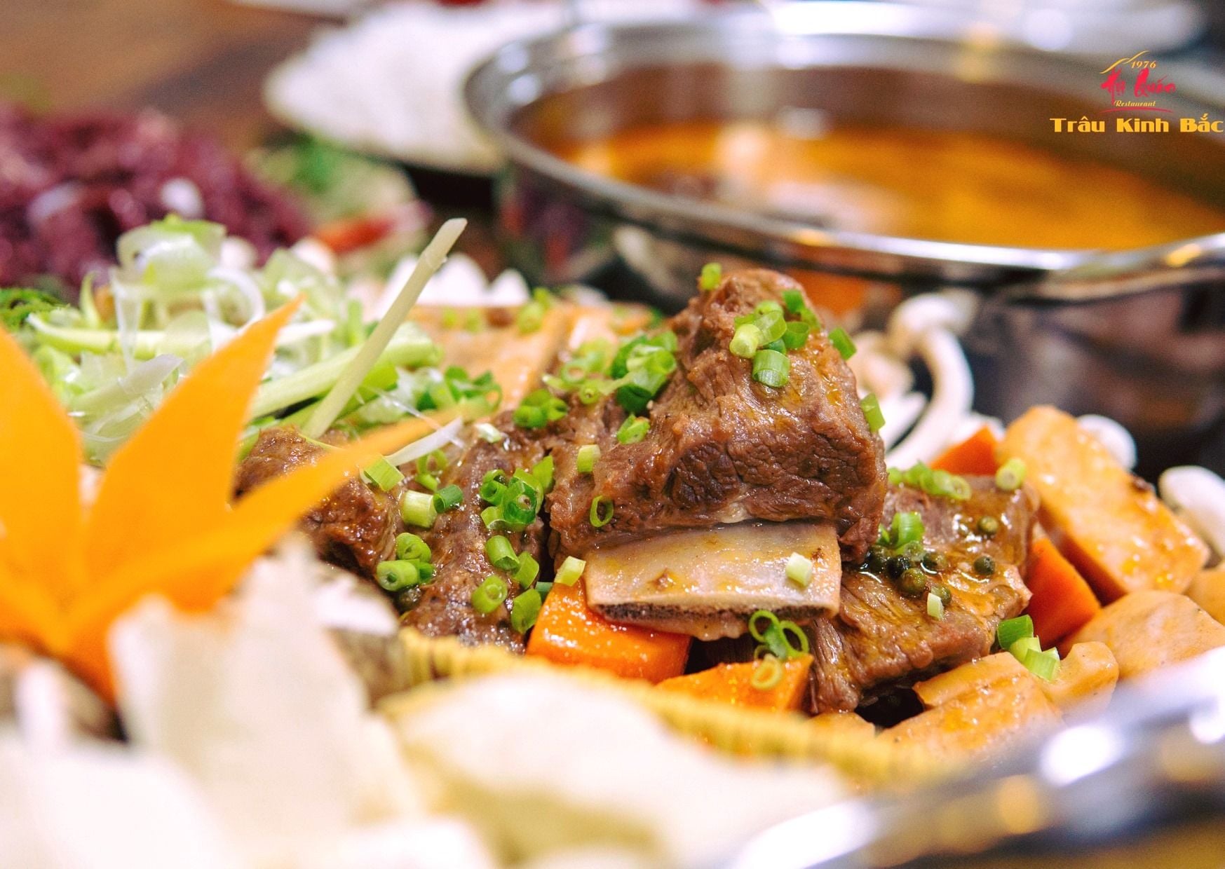 Thịt trâu nướng lá lốt, hấp, gác bếp… là những món ăn ngon được chế biến từ trâu ngon ở ba miền Việt Nam. Cũng là thịt trâu nhưng mỗi vùng miền lại có cách chế biến khác nhau, sáng tạo ra nhiều món ăn đặc sắc, mang đậm đặc trưng riêng làm say lòng du khách. Để tìm được một quán ăn chế biến thịt trâu đúng vị không hề dễ. Hội quán 1976 Trâu Kinh Bắc - 28 Thành Thái là một trong những nhà hàng chất lượng nhất về thịt trâu, sẽ mang lại cho bạn trải nghiệm đáng nhớ khi đến đây.