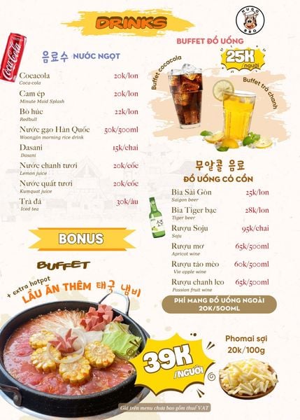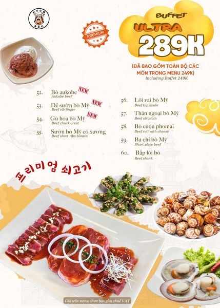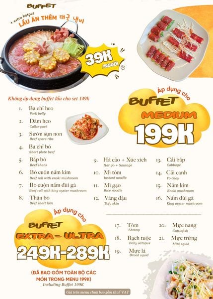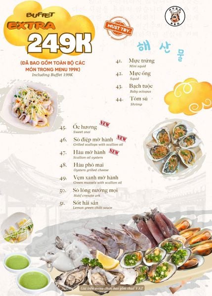 Giá menu chưa bao gồm VAT. Nhà hàng luôn thu VAT.