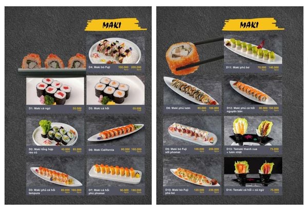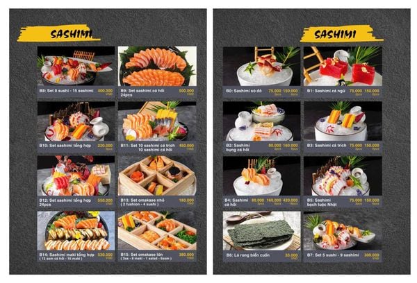 Thực đơn tại King Sushi & Lẩu Hà Đông là sự kết hợp tinh tế giữa ẩm thực Nhật Bản thanh khiết và hương vị Việt Nam đậm đà. Những món đặc trưng như Mì ếch thơm lừng, Lẩu ếch cay nồng hấp dẫn, cùng các set Sushi và Sashimi tươi mát, được trình bày đẹp mắt, chắc chắn sẽ làm hài lòng cả những thực khách khó tính nhất. Mỗi món ăn đều được chế biến tỉ mỉ từ nguyên liệu tươi ngon, đảm bảo vừa giữ được hương vị nguyên bản, vừa phù hợp với khẩu vị người Việt.