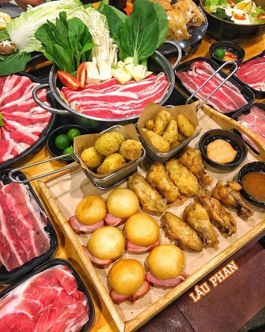 Buffet Lẩu Phan nổi tiếng nhờ 5 loại nước lẩu đa dạng với nhiều tầng hương vị thơm ngon không thể chối từ. Đặc biệt, nhà hàng lẩu Phan nằm trên con đường Thái Hà tấp nập này chỉ sử dụng 100% thịt bò Úc nhập khẩu, với phần ba chỉ thượng hạng luôn duy trì tỷ lệ mỡ và nạc hoàn hảo. Bên cách set lẩu chính đặc trưng, nhà hàng còn cung cấp nhiều món ăn kèm phong phú như gà sốt xí muội chua ngọt chuẩn vị, salad rong biển trứng cua thanh mát, sủi cảo Hồng Kông vỏ mỏng, nhân dày… nhằm mang đến cho thực khách trải nghiệm ẩm thực trọn vẹn nhất.
