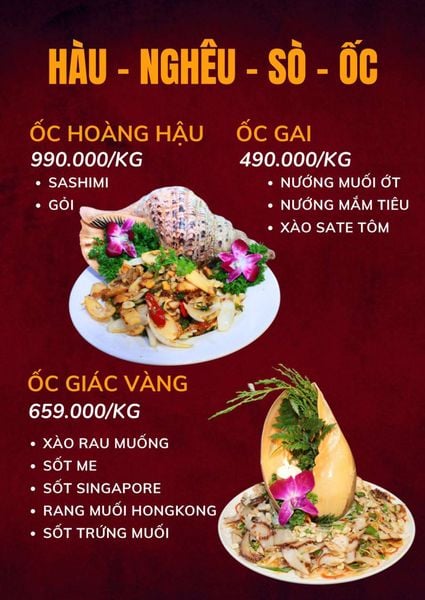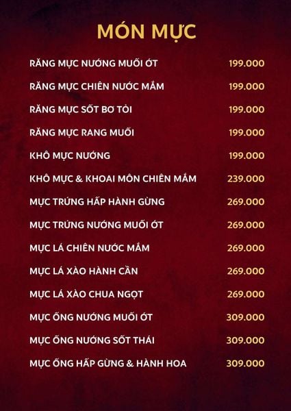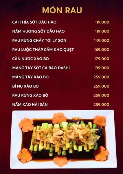 - Giá menu chưa bao gồm VAT.