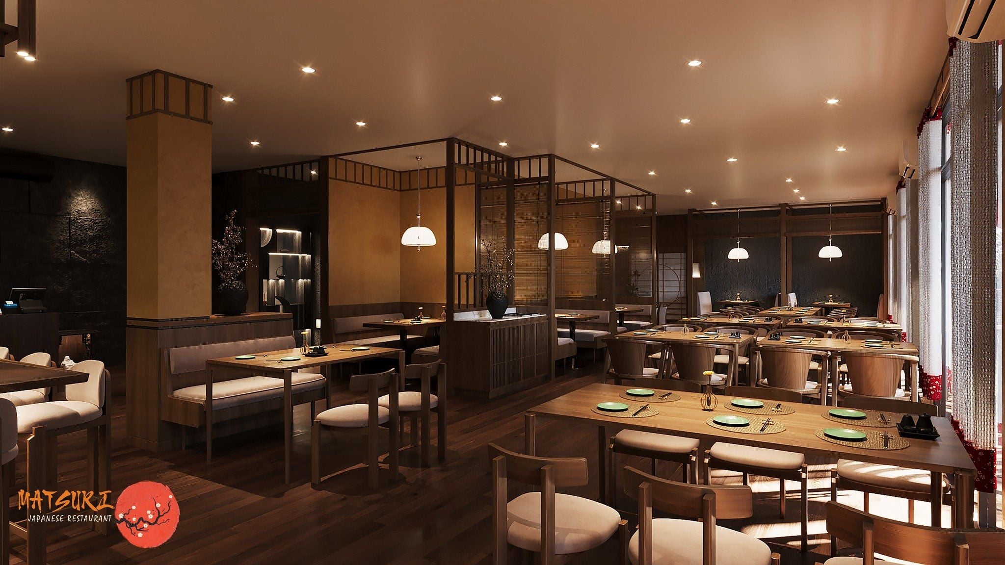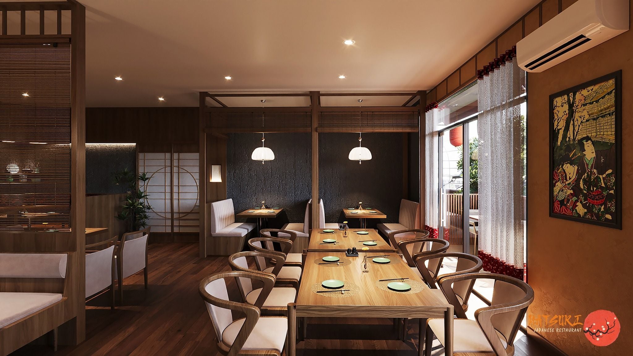 Không gian của Matsuri Japanese Restaurant - Nguyễn Huệ là sự kết hợp giữa sang trọng và ấm cúng, với thiết kế mang đậm nét nhật bản truyền thống cùng những yếu tố hiện đại. Nhà hàng sở hữu không gian sân vườn độc đáo với ánh sáng tự nhiên, tạo nên không khí thư giãn và thoải mái, thích hợp cho các buổi gặp gỡ bạn bè, tiệc gia đình hay các dịp đặc biệt.