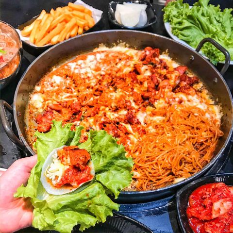 Dakgalbi là món thịt nướng phổ biến ở Triều Tiên. Món này được làm bằng lườn gà nướng trên chảo với sốt gochujang, bắp cải thái, khoai lang, hành củ, bánh dày, cà rốt. Để đáp ứng nhu cầu của thực khách, Mr Dakgalbi đã ra đời tại địa chỉ số 16 Phan Bội Châu, Cửa Nam, Hoàn Kiếm, Hà Nội. Nếu bạn là một người yêu thích món ăn Hàn Quốc với hương vị cay, ngọt và có một không gian xinh xắn, ấm cúng thì hãy lựa chọn Mr Dakgalbi ngay nhé.