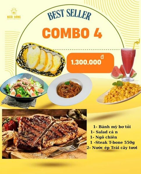 Để nói điểm thu hút nhất của Ngói Vàng Steak với thực khách thì chắc có lẽ sẽ là thực đơn đa dạng, phong phú. Bạn nhất định không thể bỏ những món ăn làm nên thương hiệu của nhà hàng như: Mỳ ý sốt bò băm, bò bản vai sốt, Beef Ribeye nướng bản đá, Steak T Bone, Bò lõi vai nướng bản đá, Hải sản bỏ lò kiểu Pháp, Salad hoàng đế cá hồi,... khi đến nơi đây trải nghiệm. Những món ăn được chế biến cẩn thận, tỉ mỉ, trình bày sang trọng của nhà hàng dưới đôi tay tài hoa của những đầu bếp hàng đầu đảm bảo sẽ mang đến cho bạn một trải nghiệm khó quên.