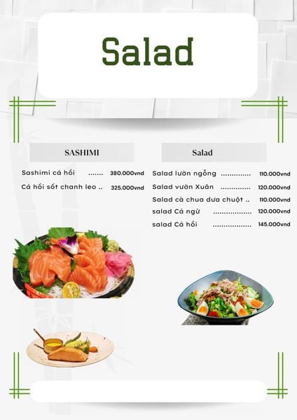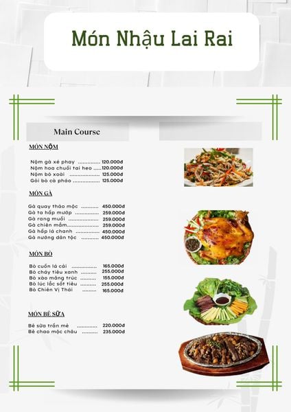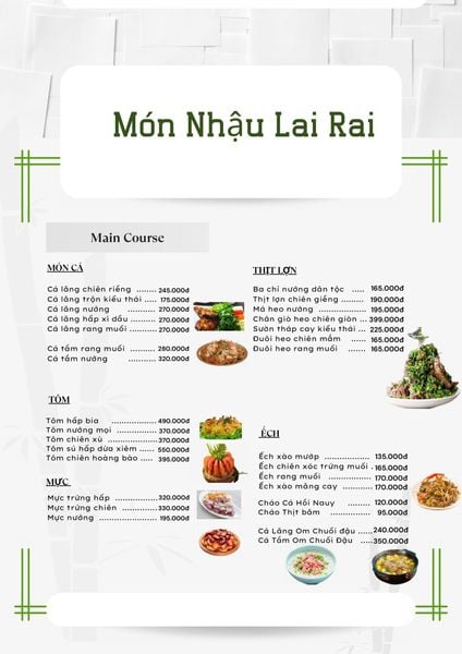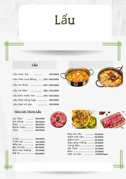 - Giá menu chưa bao gồm VAT. Quý khách lấy hóa đơn, vui lòng thanh toán thêm chi phí VAT.