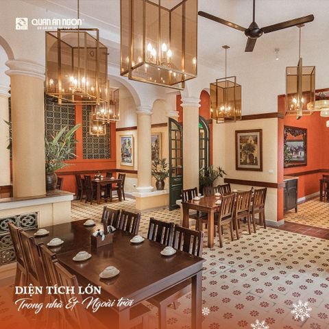 Quán có sức chứa khổng lồ lên đến 500 khách với hơi thở truyền thống bao trùm lên toàn bộ không gian tòa biệt thự Pháp cổ. Giữa Hà Nội bây giờ, thật khó kiếm được một nơi cho ta được thả hồn cùng những bức tranh dân gian mộc mạc, thả hồn cùng dàn bóng đèn lấp lánh