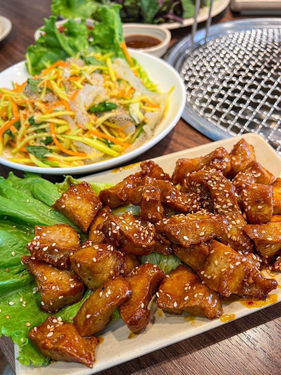 Nhà hàng Ngon BBQ đem đến cho thực khách bữa tiệc thịnh soạn với những món ăn chất lượng và đa dạng từ khai vị đến các loại lẩu, nướng. Khi đến với Ngon BBQ thì chắc chắn bạn phải thử qua các món làm nên tên tuổi của nhà hàng: lẩu ếch, nầm chiên. Nước lẩu không quá cay, vị chua thanh mát mà đậm vị, đi kèm với măng chua giòn sần sật, thịt ếch mềm ngọt tự nhiên. Đặc biệt, nầm chiên của nhà hàng được chế biến kĩ càng, không bị hôi mà rất giòn, ngậy béo chắc chắn sẽ khiến bạn hài lòng khi dùng bữa tại quán.