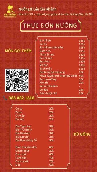 Nướng & Lẩu Gia Khánh – C01-L39 Lê Quang Đạo phường Dương Nội, quận Hà Đông, Hà Nội – Điểm hẹn nướng lẩu đậm vị cho những buổi tụ họp rộn ràng