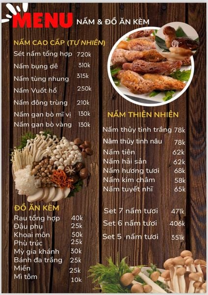 * Món đặc sắc: Set Nấm bổ dưỡng, Thịt H'mong, Cá Chình, Thịt bò ba chỉ,...