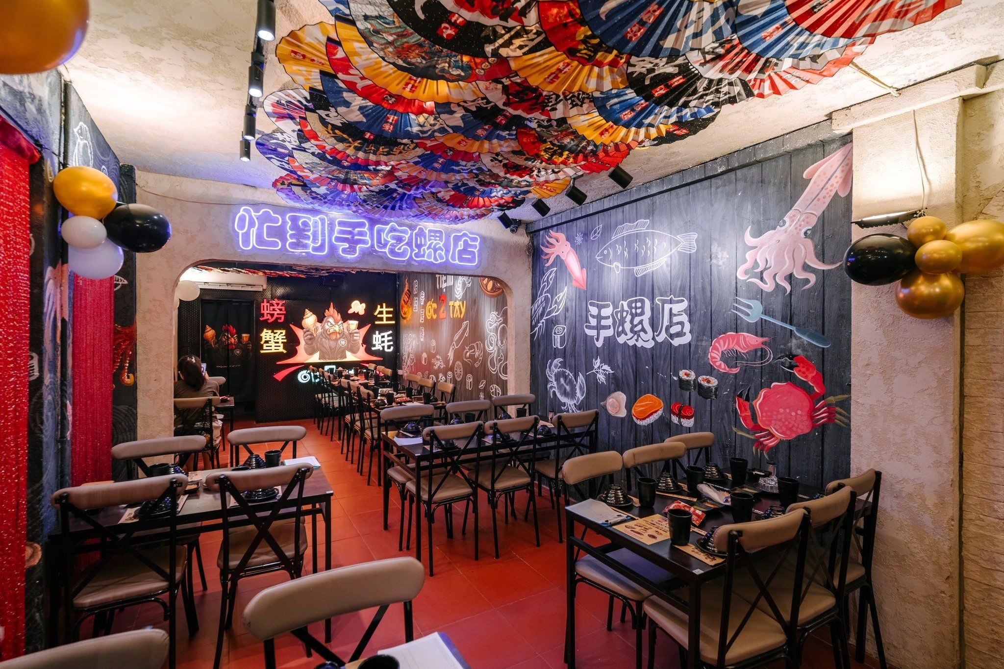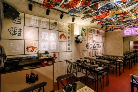 Chọn cho mình một chỗ ngồi ở Ốc 2 Tay, chắc chắn thực khách sẽ xuýt xoa với không gian với sức chứa 120 khách và thiết kế theo phong cách Hồng Kông hiện đại. Sự kết hợp của gam màu đỏ ấm nóng cùng những ánh đèn nhẹ nhàng, đèn lồng mang đậm chất Hồng Kông tạo cảm giác rất hoài cổ nhưng cũng rất trẻ trung, thu hút được sự quan tâm của không ít bạn trẻ.