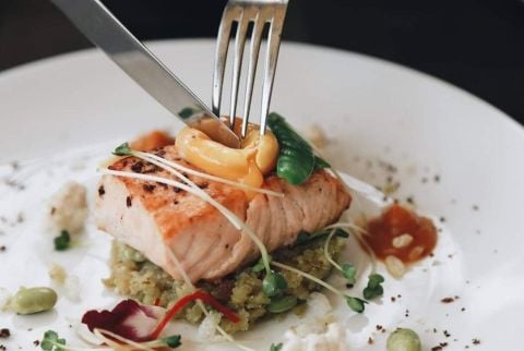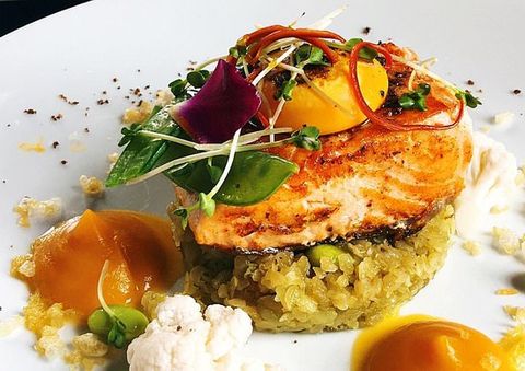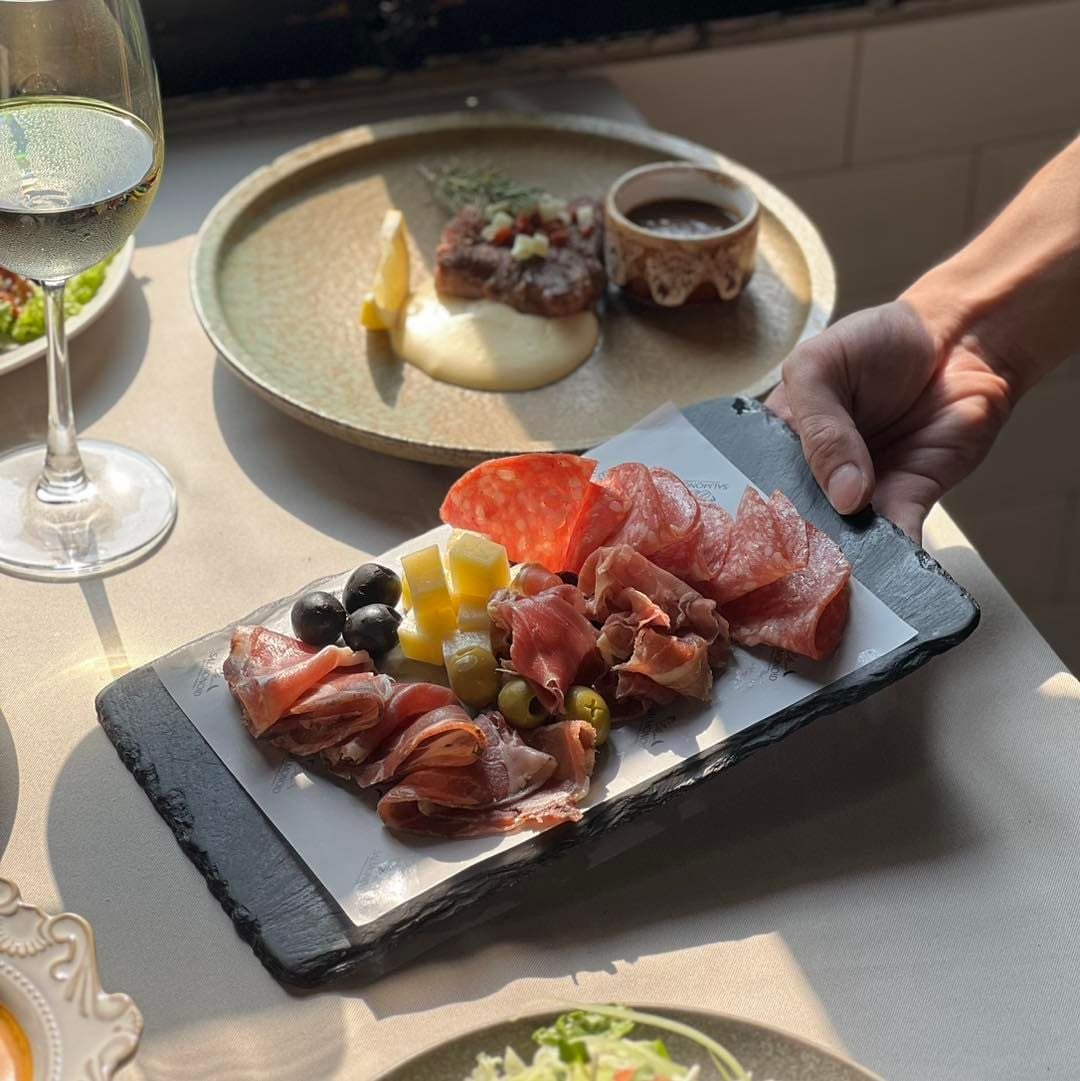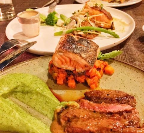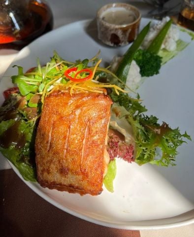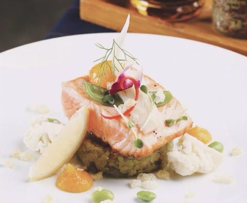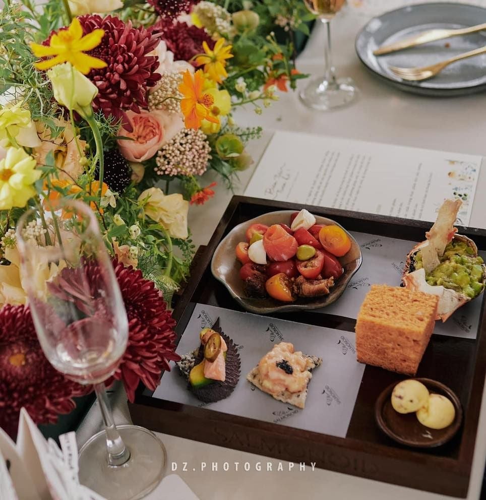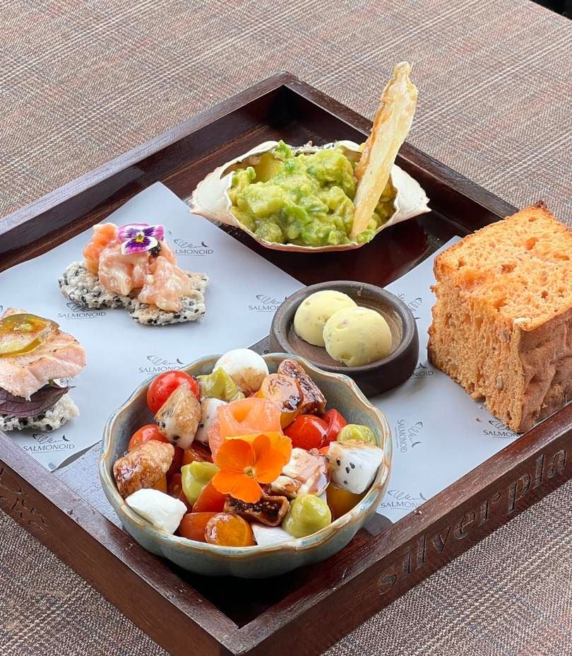 Điểm sáng trong thực đơn của Salmonoid chính là cá hồi, được biến tấu một cách độc đáo, vừa giữ nguyên hương vị thơm ngon của món cá đặc trưng, vừa nâng món ăn lên một tầm cao mới nhờ sự điểm xuyết của yếu tố Việt Nam. Cá hồi xông khói phủ mát kem và bơ nghiền nhuyễn, carpaccio cá hồi,... được trình bày đẹp như một bức tranh, khiến thực khách không chỉ tận hưởng món ăn bằng vị giác mà chắc chắn “phải lòng” ngay từ cái nhìn đầu tiên. Không những vậy, Salmonoid còn chiêu đãi các vị khách sành ăn bởi các món nướng đậm chất Âu, với những miếng sườn cừu, dẻ sườn lợn Iberico, lườn vịt, gan ngỗng áp chảo được chế biến công phu, ăn kèm với phô mai nướng béo ngậy và sốt trái cây tươi mát, đảm bảo sẽ mang đến cho bạn một trải nghiệm ẩm thực khó quên.